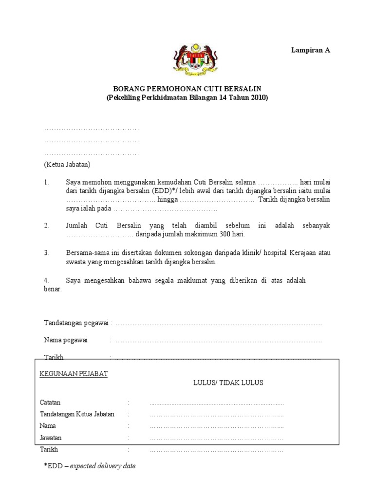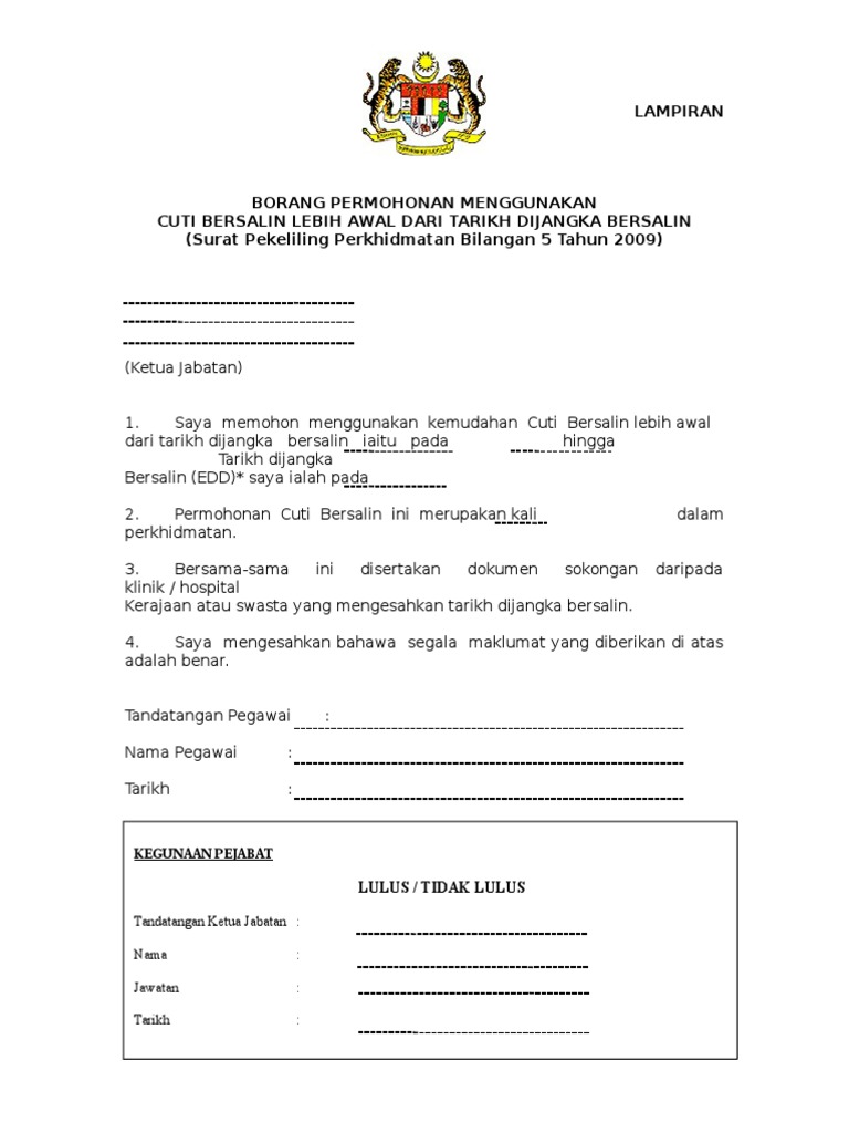 Borang Permohonan Cuti Bersalin Pdf