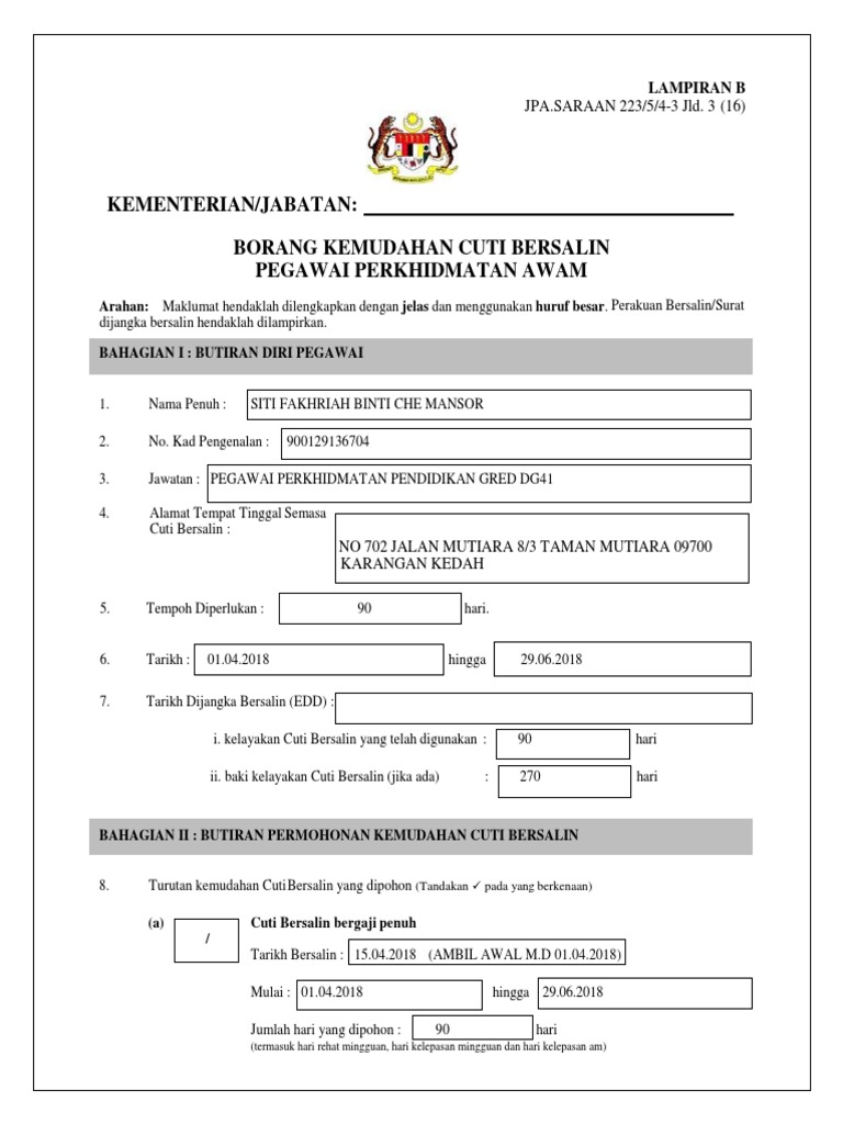 Borang Permohonan Cuti Bersalin Terkini Mariodsxz